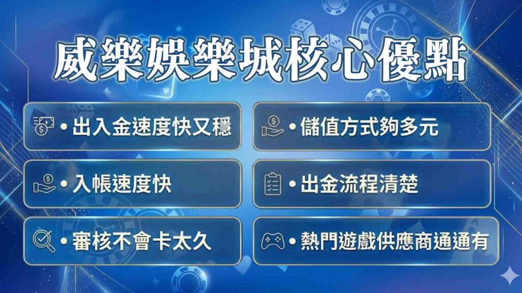 對玩家來說,出入金順暢最重要,也最能直接反映一個平台是否誠信,讓玩家安心長期留在威樂娛樂城。