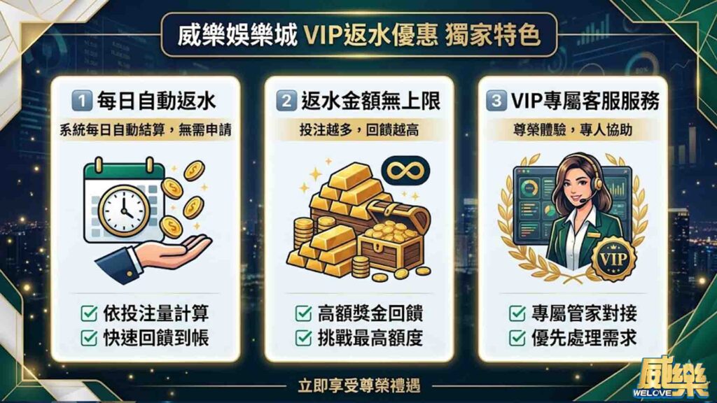 威樂娛樂城VIP返水優惠有哪些特色?